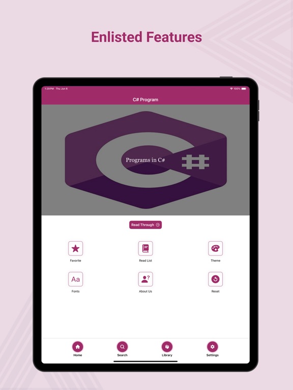 "description": "The C# programming app will teach you everything about C# programs. \n\nC# is basically a general-purpose, high-level programming language supporting multiple paradigms. \n\nIn this modern era where everything is automated, technology has taken a huge rise. When I say technology, computers are everything, especially in the IT field. There are many computer languages available, and the one who knows them all is notable. Staying updated and learning new things will always help us grow personally and professionally.\n\nUsing C# Programs, we can do stuff like designing compilers, developing operating systems, graphical user interfaces, brose engines, and embedded systems.\n\nIn C# app, we get to learn about the introduction to C#, the difference between ref and out parameters, boxing in C#, dynamic type variables in C#, operators in C#, C# properties (Get and Set), generics in C#, and a lot more.\n\n\nFEATURES OF THE APP:\n\t•\tThe C# Programming Language app has a very user-friendly interface. You just have to open the app and select any topic you want to learn about, and all the answers will be displayed.\n\n\t•\tThe app has a separate folder called \"Library”, which can be used as a personal reading list of topics you wish to learn in the future and can also add to favourites any topic you enjoyed and loved learning.\n\n\t•\tThemes and Fonts can be customised according to your reading style.\n\n\t•\tThis app's main motive is to sharpen the user's IQ with all the C# Programming languages.",