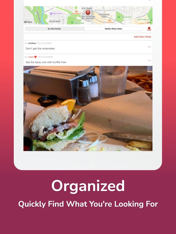 "description": "Faves is an easy to use, powerful location based note taking app. Take notes, photos, record likes, dislikes, and tag them to any geographical location. Set geo-reminders that will notify you when you return to that spot. Sort by category, view on a map, or search by what's nearest to you. Automatically sync between all your iOS devices. There are many applications. Here are some of our favorites:\n\n• Restaurants to remember or avoid\n• Special orders to get again\n• Favorite or disappointing tourist spots\n• Items like or dislike while shopping\n• Where we parked our car :)\n\nThese are just few of our uses for this app. There are endless applications, tell us about your favorites.\n\nFeatures:\n\n• Tag notes and photos to any location\n• Ratings of what you liked/disliked\n• Location based reminders\n• Easy sorting and categorization\n• Automatically syncs between devices\n• Dark mode supported",