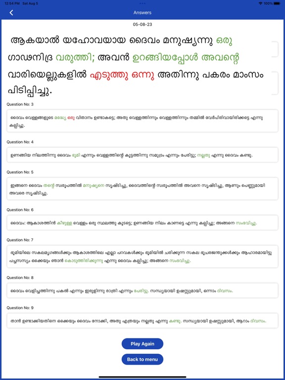 "description": "How good is your biblical knowledge?\n\nPlay Malayalam Bible Quiz game and learn more depth of the BIBLE!\n\nDownload Malayalam Bible Quiz Now!\n\nThe Malayalam Bible Trivia quiz application is a fun and interactive way for users to test their Biblical knowledge. It is designed to be more engaging, with a wide range of questions from every book of the Bible. This quiz application includes lifelines, go-for-help options, rewards for correct answers, and a scoreboard to track progress. It is an excellent tool to deepen your understanding and strengthen your relationship with God to grow in your faith.\n\nFEATURES - LET’S CHALLENGE QUIZ GAME!\n# User-friendly Design\n# Hundreds of quiz questions\n# Deep understanding of the Bible\n# Preference to select the different levels of difficulty\n# Go-for-Help Options: 50-50 and Hint\n# Scoreboard to view your scores\n\nHOW TO PLAY:\n- Select the Bible book and its corresponding chapter number\n- Choose the levels of difficulty: Easy, Medium, and Hard\n- You will be playing for the questions from the Bible verses of both the Old Testament & New Testament with two or more words missing. The goal is to fill in the missing words correctly.\n- If you are unable to find an answer, you can avail our 50-50 or Hint help options.\n- You can use up to 3 lifelines and earn reward coins \n\nWhy wait?\n\nDownload Malayalam Bible Quiz Now!\n\nFor support/feedback, contact us at [email protected]\n\nWe welcome any valuable suggestions from you!",