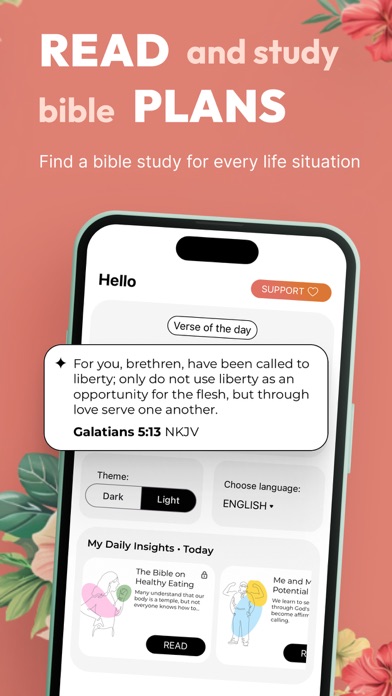 "description": "The Women's Bible app brings the divine word to every woman's unique path, offering guidance, solace, and strength at every turn of life. This app, specially designed with women's spiritual growth in mind, stands as a constant companion in their journey of faith.\n\nEmbark on a personalized path with the Women's Bible app, designed to cater to the spiritual needs and daily challenges of women everywhere. Dive into over 50 translations of the Bible, craft personal prayers, find Bible quotes that resonate with your life moments, and receive personalized notifications with verses that uplift and inspire. Download today and start your journey of faith and discovery.\n\nWomen around the globe read, share, and find inspiration in the Scriptures through Women's Bible, enriching their faith and finding solace in God's Word.\n\nCustomize your experience with Women's Bible to suit your spiritual journey. Enjoy full online access or download your preferred versions and translations for offline devotion.\n\nGrow closer to God and strengthen bonds with your loved ones through Women's Bible. Engage in meaningful conversations about Scripture and nurture deeper connections.\n\nIncorporate prayer into your daily routine:\n\nOrganize your prayers with prayer cards.\nEasily create lists for your prayer intentions.\nKeep your prayers private or share them with your community.\nExplore the Word:\n\nChoose from over 50 Bible versions in more than 10 languages.\nAccess translations like Synodal (SYNO), New Russian Translation (NRT), and others tailored for a more personal understanding.\nEnjoy reading the Bible offline with selected translations.\nStudy the Bible:\n\nDiscover plans designed for women, including \"Bible in One Year\" and special devotionals.\nUtilize a keyword-based Bible search to find passages relevant to your life.\nReceive personalized revelations:\n\nGenerate Bible quotes that speak to your heart and share them with friends.\nCustomize Women's Bible for your needs:\n\nAdjust background colors for a comfortable reading experience.\nHighlight verses, add bookmarks, and share inspirational passages with friends.\nKeep personal or public notes and synchronize everything across devices with a free Women's Bible account.\nTrack your spiritual journey through your reading history.\nConnect with Women's Bible:\n\nDirectly access customer support from the app.\nJoin the Women's Bible community on social networks.\nStay informed with the latest updates on our blog.\nRead the Bible on your browser at https://bible-future-foundation-web-413b101dd05d.herokuapp.com/\nDive into the world of Scripture with Women's Bible - a dedicated guide for women to explore their faith more deeply. Download now and join a community of women embarking on a fulfilling spiritual journey.Set forth on a uniquely tailored spiritual voyage with the Women's Bible app, crafted to meet the spiritual aspirations and everyday challenges faced by women across the globe. Immerse yourself in a rich selection of over 50 Bible translations, create heartfelt prayers, discover Bible verses that echo your personal experiences, and get customized verse notifications to uplift and motivate you. Initiate your exploration of faith and self-discovery today by downloading the app.\n\nPrivacy Policy: https://sites.google.com/view/womens-bible-pp\nTerms of use: https://www.apple.com/legal/internet-services/itunes/dev/stdeula/",